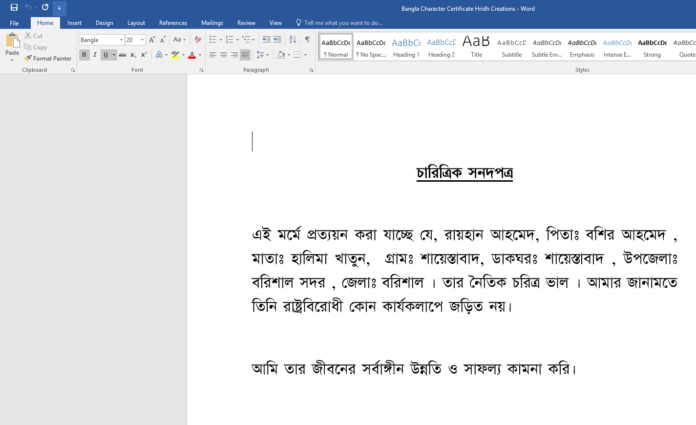 How To Write A Bangla Character Certificate